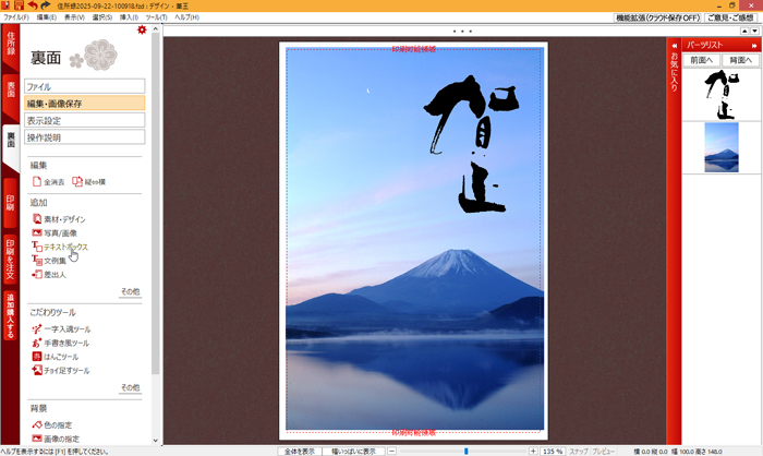 左側上部にある「編集」をクリックし、[追加]の「テキストボックス」をクリックします。![]() |