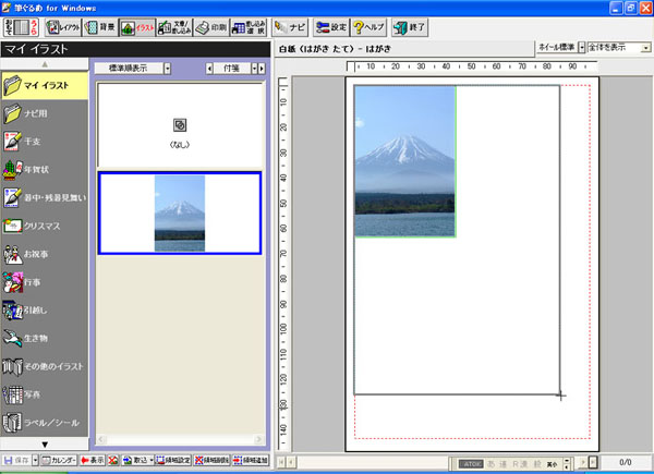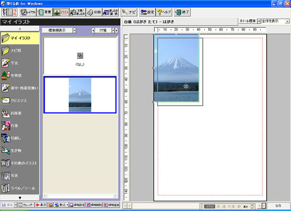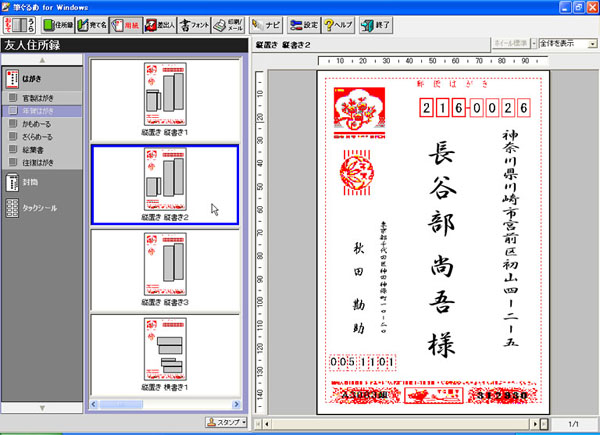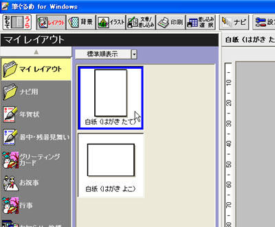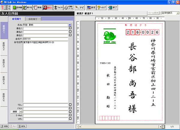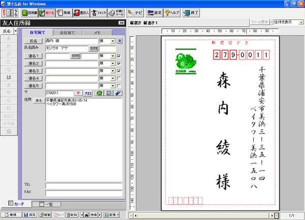 メインツールバーの[おもて うら]ボタンをクリックし、うら(文面)に切り替えます。 | ||||||||||||||||||||