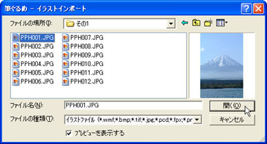 目的の画像を選択し、[開く(O)]ボタンをクリックします。![]() |