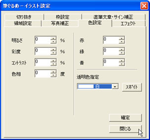 画像まわりを透かしたい場合は、「色設定」タブをクリックします。 | ||||||||||||||||||||