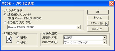 [プリンタの選択]でプリンタを選択し、[オプション(O)]ボタンをクリックします。![]() |
