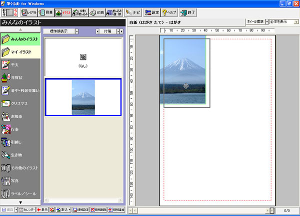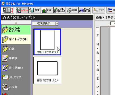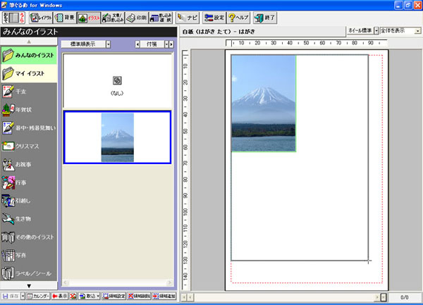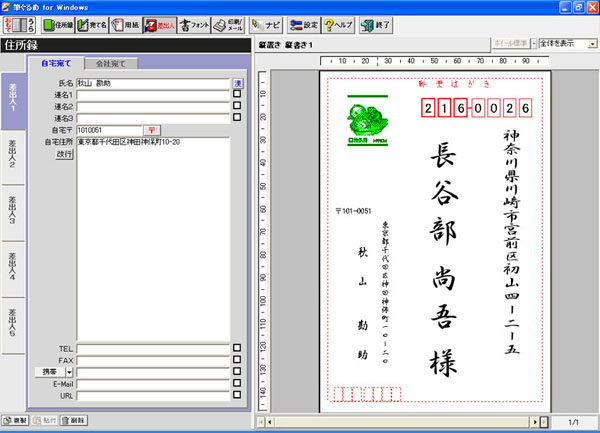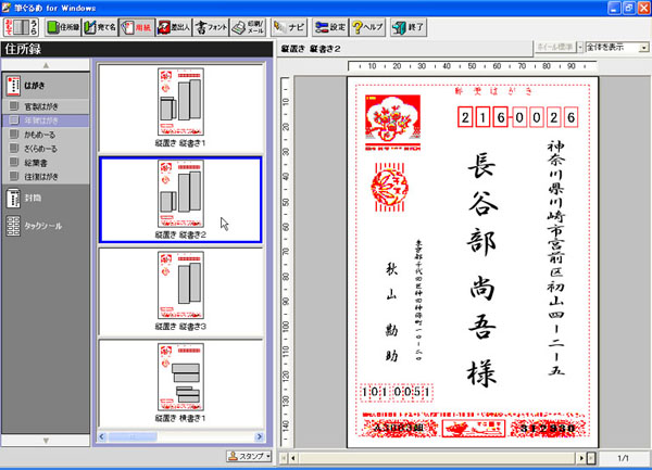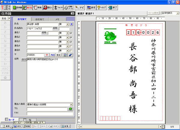 メインツールバーの[おもて うら]ボタンをクリックし、うら(文面)に切り替えます。 | ||||||||||||||||||||