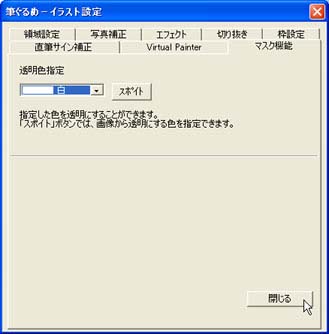 画像まわりを透かしたい場合は、「マスク機能」タブをクリックします。 | ||||||||||||||||||||
