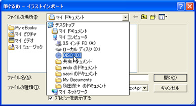 [ファイルの場所(I)]の▼をクリックして、本書の付属DVD-ROMを選択します。![]() |