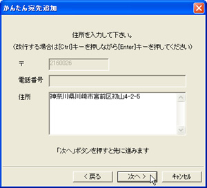 | (8) | 番地を入力し、[次へ]ボタンをクリックします。![]() |