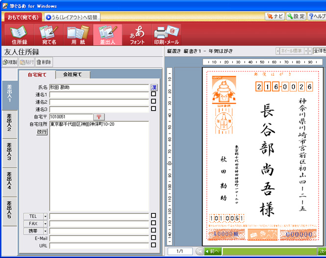 「おもて(宛て名)へ切替」タブをクリックします。 | ||||||||||||||||||||