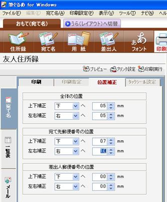 「おもて(宛て名)へ切替」タブをクリックします。 | ||||||||||||||||||||