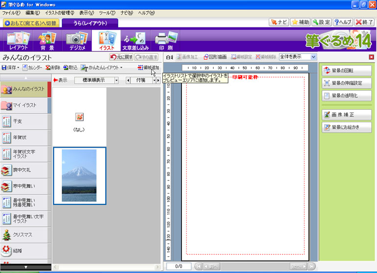 目的の画像を選択して、[領域追加]ボタンをクリックします。![]() |