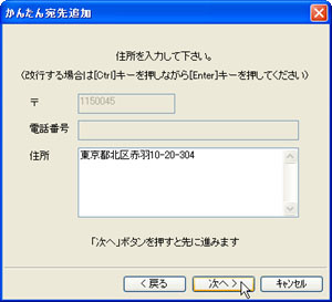 番地を入力し、[次へ>]ボタンをクリックします。![]() |