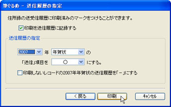 「送信履歴の指定」を設定し、[印刷]ボタンをクリックします。![]() |