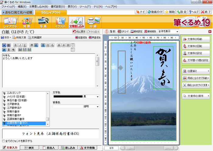 | 本書の付属DVD-ROMに収録されているはがきデータを筆ぐるめ