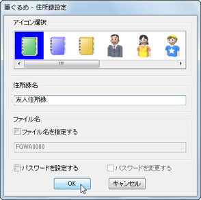 アイコンを選択し、住所録の名前を入力して、[OK]ボタンをクリックします。![]() |