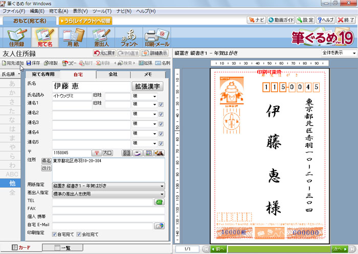 「おもて(宛て名)へ切替」タブをクリックします。 | ||||||||||||||||||||