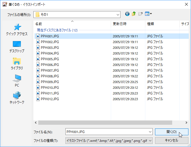 目的の画像を選択し、[開く(O)]ボタンをクリックします。![]() |