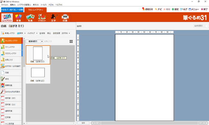 [白紙(はがき たて)]をクリックします。![]() |