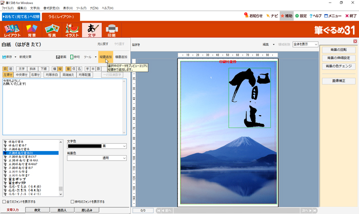 | 本書の付属DVD-ROMに収録されているはがきデータを筆ぐるめ