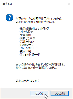 [はい(Y)]ボタンをクリックします。 なお、使用した画像によっては、この画面は表示されません。 ![]() |