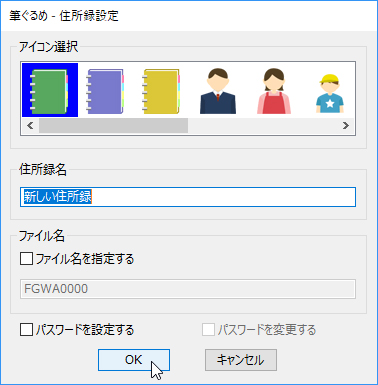 アイコンを選択し、住所録の名前を入力して、[OK]ボタンをクリックします。![]() |