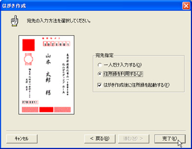 [住所録を利用する(J)]をONにし、[完了(K)]ボタンをクリックします。![]() |