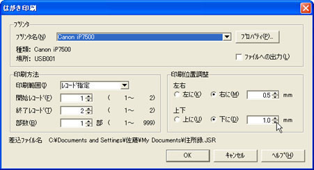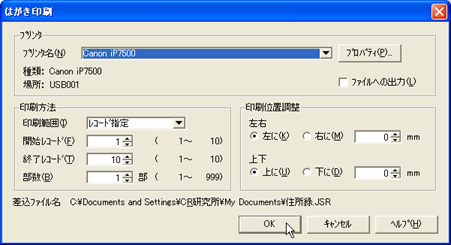 [はがき作成]をクリックし、[OK]ボタンをクリックします。 | ||||||||||||||||||||