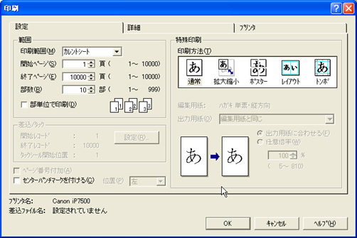 「印刷」ダイアログボックスの[OK]ボタンをクリックします。 | ||||||||||||||||||||