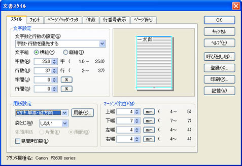 [マージン(余白)(M)]の[上端][下端][左端][右端]にそれぞれ数値を入力し、余白を設定します。![]() |