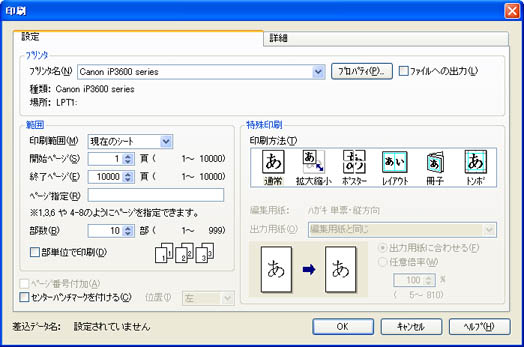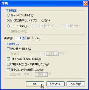 「印刷」ダイアログボックスの[OK]ボタンをクリックします。 | ||||||||||||||||||||