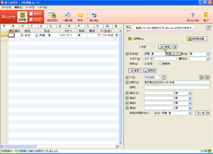 | 住所録を作成するには、次のように操作します。 | |||||||||||||||||||||
