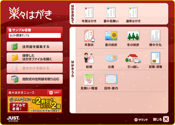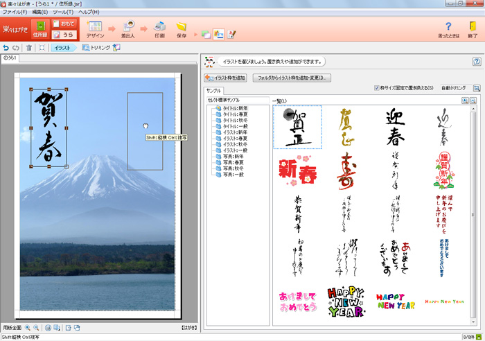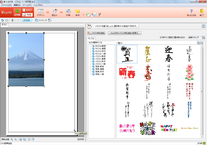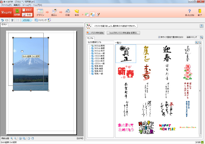 | 本書の付属DVD-ROMに収録されているはがきデータを楽々はがき