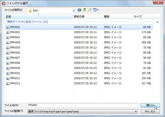 目的の画像をクリックし、[開く(O)]ボタンをクリックします。![]() |