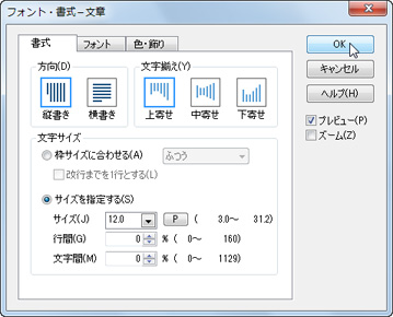 [文章(B)]欄に文字を入力します。 | ||||||||||||||||||