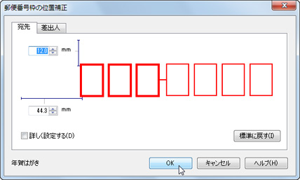 設定画面で「はがき」タブをクリックします。 | ||||||||||||||||||