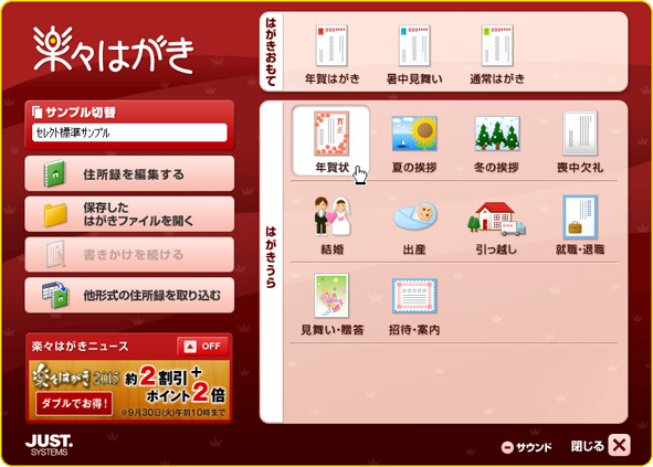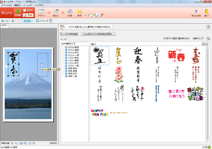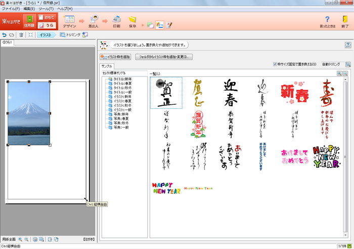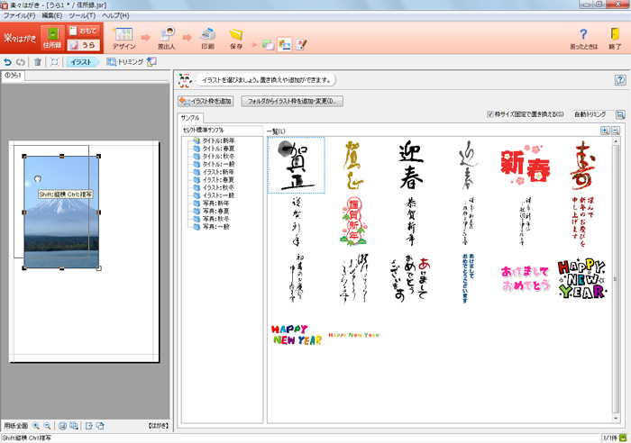 | 本書の付属DVD-ROMに収録されているはがきデータを楽々はがき