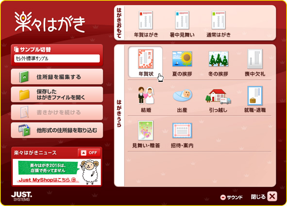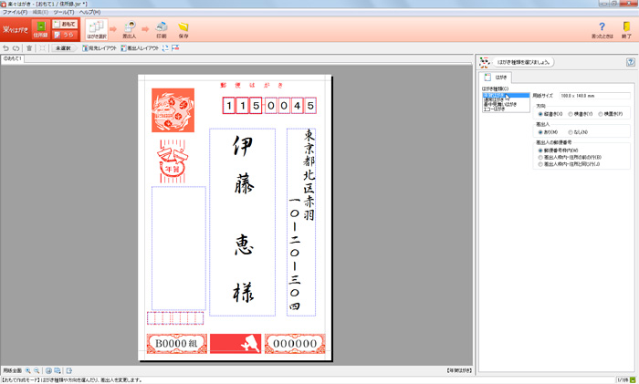 | 本書の付属DVD-ROMに収録されているはがきデータを楽々はがき