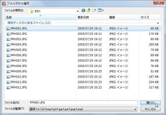 目的の画像をクリックし、[開く(O)]ボタンをクリックします。![]() |
