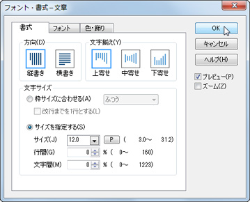 [文章(B)]欄に文字を入力します。 | ||||||||||||||||||