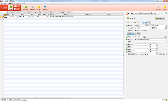 コマンドバーの[住所録]ボタンをクリックします。 | ||||||||||||||||||