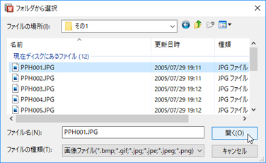 目的の画像をクリックし、[開く(O)]ボタンをクリックします。![]() |
