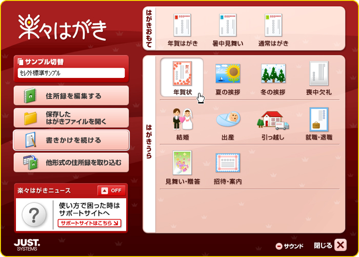 | 本書の付属DVD-ROMに収録されているはがきデータを楽々はがき