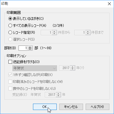 [部数(B)]に印刷部数を入力し、[OK]ボタンをクリックします。 | ||||||||||||||||||