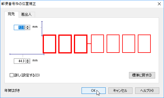 設定画面で「はがき」タブをクリックします。 | ||||||||||||||||||