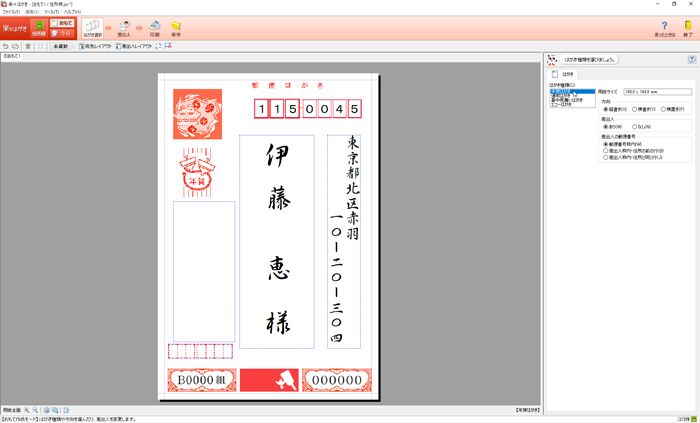 [はがき種類(C)]から「年賀はがき」を選択します。 ※用途に応じて選択してください。 ![]() |