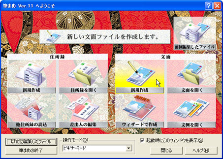 画面左上にある[オープニングメニュー]ボタンをクリックして、[住所録ファイル]の[新規に筆まめ住所録ファイルを作成します]をクリックします。![]() |