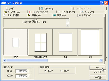 「ハガキ・普通紙」タブをクリックして、「はがき」を選択します。 | ||||||||||||||||