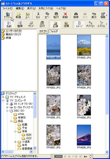 目的の画像を選択し、[アプリへ]ボタンをクリックします。![]() |