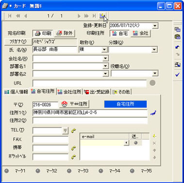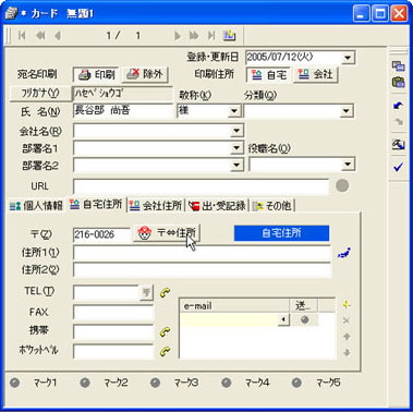 カードウィンドウの「自宅住所」タブをクリックします。 | ||||||||||||||||