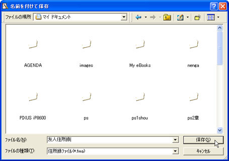 [ファイル名(N)]にファイル名を入力し、[保存(S)]ボタンをクリックします。![]() |