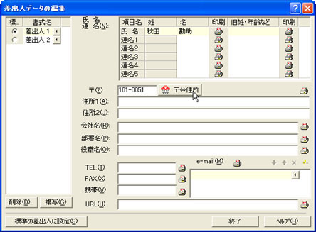 [〒(Z)]に郵便番号を入力し、[郵便番号⇔住所変換]ボタンをクリックします。![]() |
