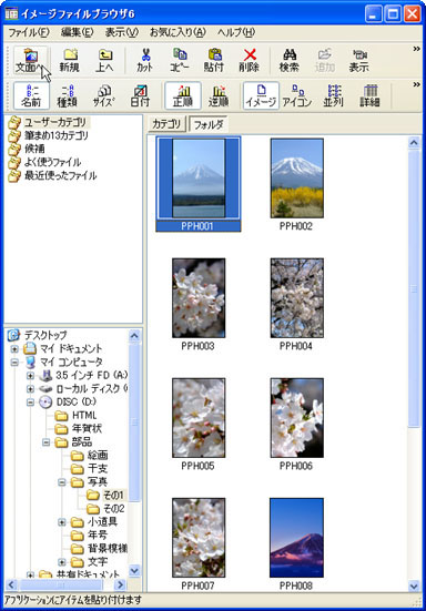 目的の画像を選択し、[文面へ]ボタンをクリックします。![]() |