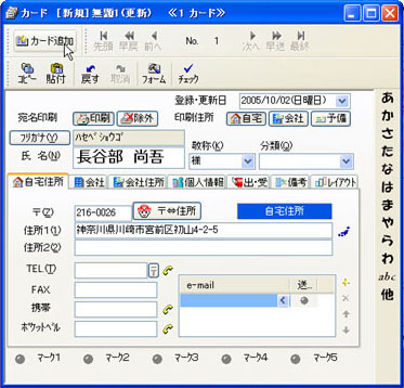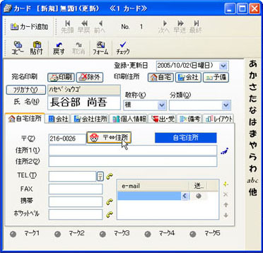 カードウィンドウの「自宅住所」タブをクリックします。 | ||||||||||||||||